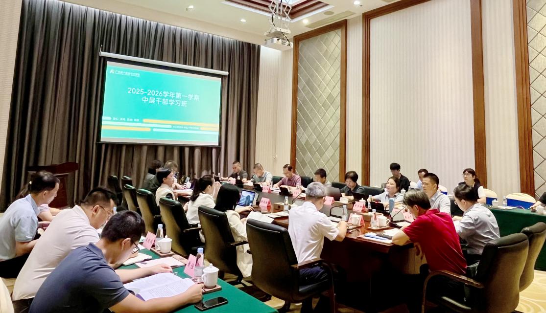 为进一步提升中层干部的理论素养、战略思维与创新管理能力,推动学校在新学年实现扩容提质增效的跨越式发展,广州康大职业技术学院于8月27日至 29日举办 2025-2026 学年第一学期中层干部学习班。全体校领导、中层干部齐聚一堂,通过专题报告、政策领学、交流研讨等丰富形式,以创新思维为钥,共探学校高质量发展新路径。